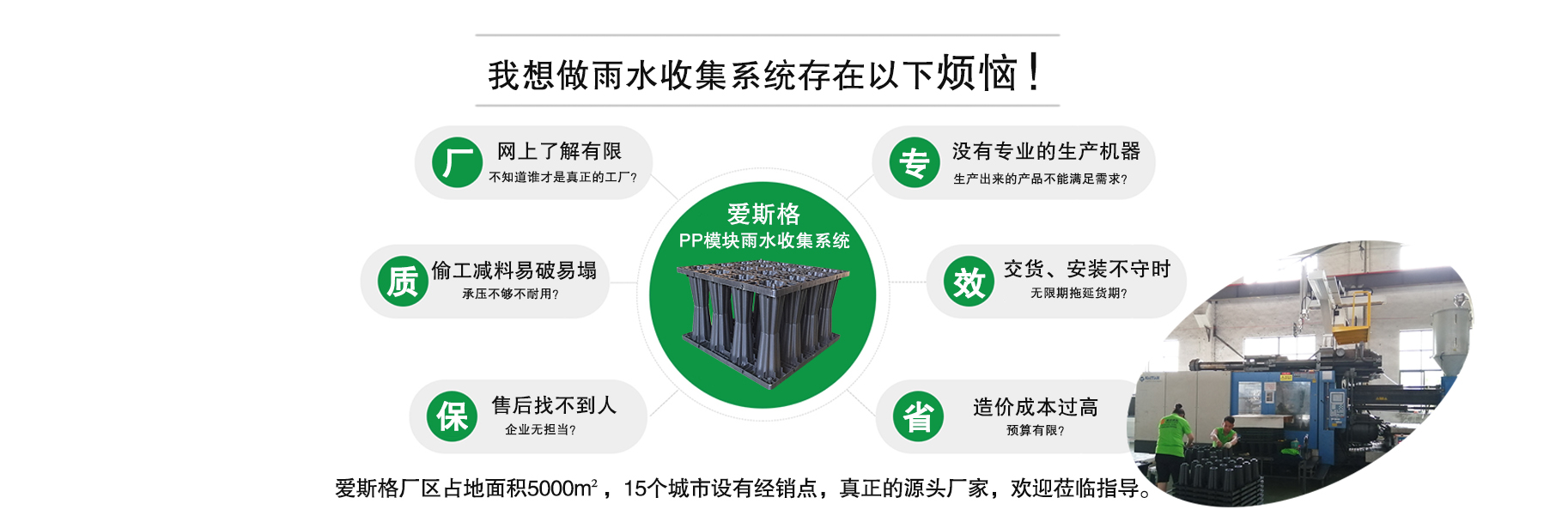 廣州愛斯格環保科技有限公司是一家集雨水收集系統研發、PP模塊生產、一體化機電設備生產、咨詢設計與安裝、運營管理與生產銷售為一體的“EPC總承包模式”高科技企業,已在雨水回收利用及其綜合業務方面處于優秀地位。       我司擁有強有力的團隊支持,可迅速提供技術解決方案與成本的估算,提供技術指導與推廣的協作工作。       我司在海綿工程企業中以質量可靠聞名,設計系統包括:初期雨水排除器、雨水回收一體系統、高架道路雨水回收系統、公路自體排水蓄水凈化系統、洪水調蓄雨水回用系統、適合新開發區域的收集系統、三功能蓄水池以及小海綿,中海綿,大海綿工程的解決方案等?!ぁぁ?